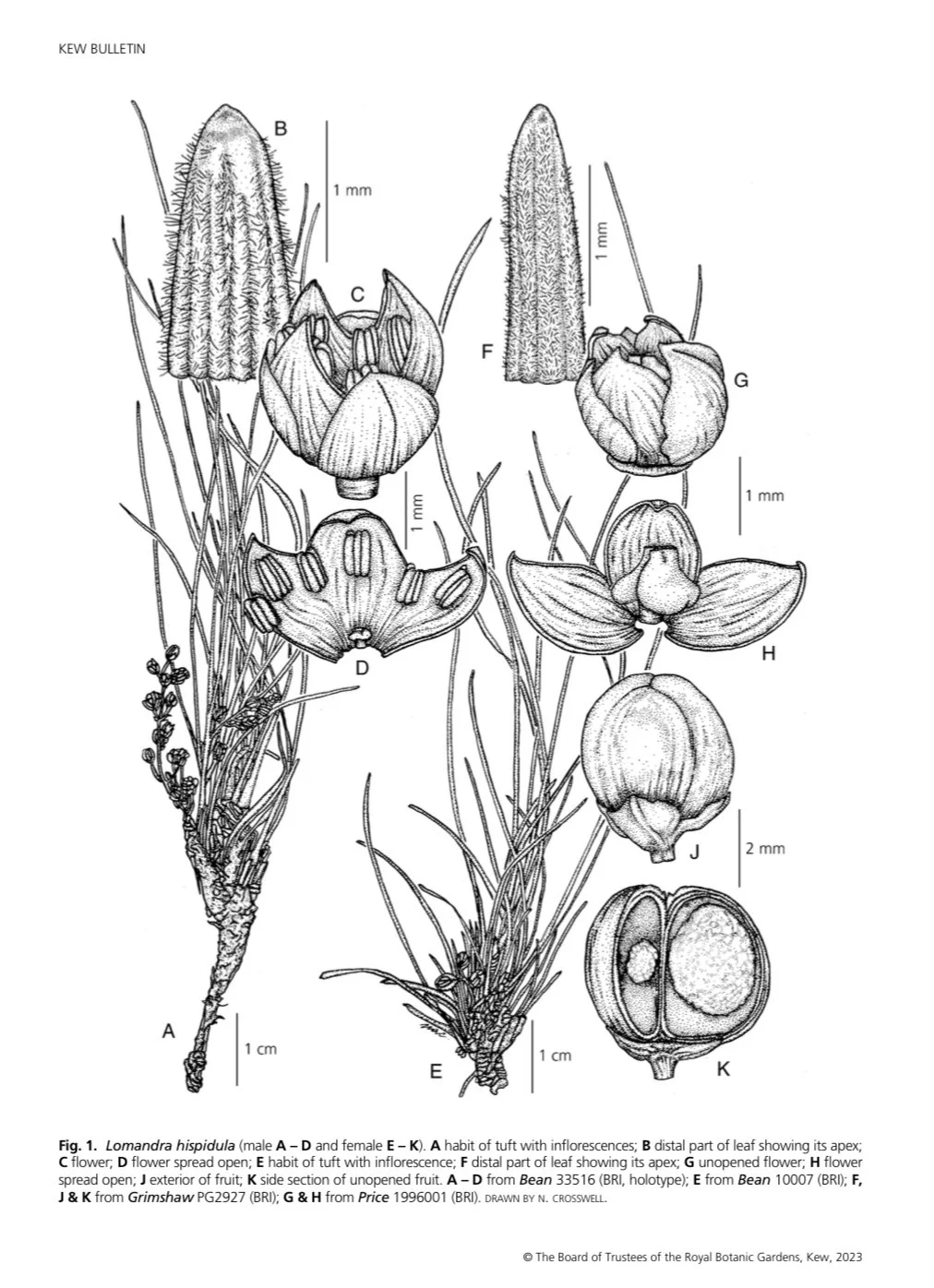 Lomandra hispidula    Kew Bulletin, Volume 78(2): 223-228 (2023), J.Wang, The Queensland Herbarium.    https://link.springer.com/article/10.1007/s12225-023-10076-1